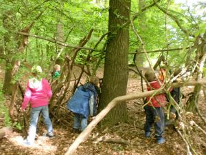 Im Wald machen die Kinder Erfahrungen in der Gemeinschaft, werden miteinander aktiv, müssen mal nachgeben oder sich durchsetzten, z.B. beim Bauen einer Hütte aus Ästen. Sie lernen den eigenen Körper kennen, setzten sich mit ihm intensiv auseinander und machen sich ein eigenes Bild über ihre Fähigkeiten.